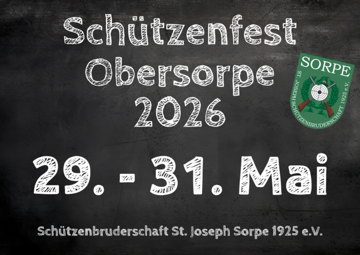 Herzlich willkommen bei der St. Joseph Schützenbruderschaft Sorpe 1925 e.V. Hier erfährst Du alles über unseren Verein und seine Aktivitäten. Schützenfest findet jeweils Ende Mai oder Anfang Juni statt. Musikalisch begleiten uns seit 40 Jahren der Musikverein Wulmeringhausen und der Tambourkorps Oberkirchen.
